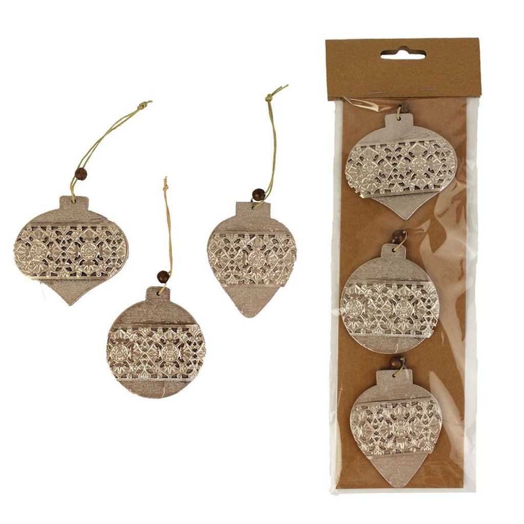 Vánoční ozdoby, 3ks D0842 - 5,5 - 7 x 0,3 x 7 - 7,5 cm