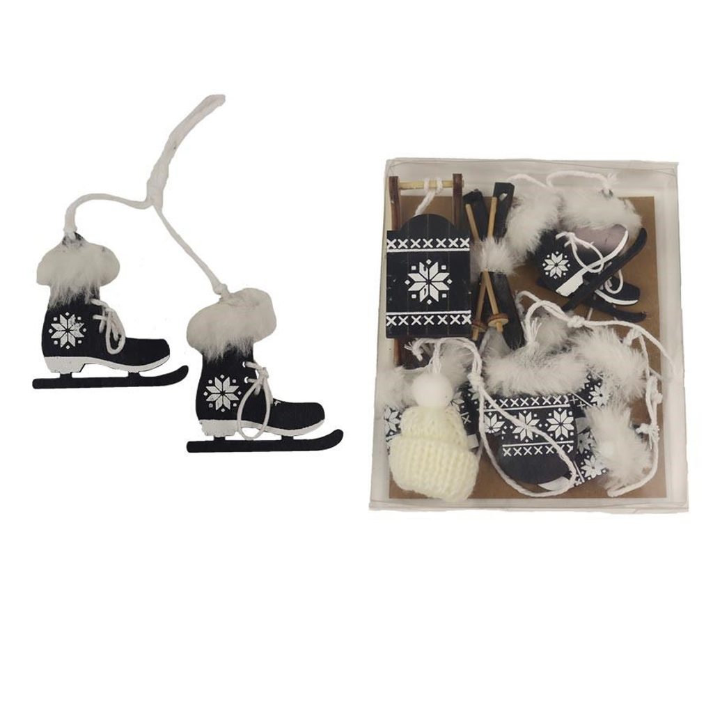 Sada dekorací k zavěšení. Sada obsahuje 6 dekorací. Rozměry : 2,5 - 6 x 0,5 cm, výška 2 - 6 cm. Barva : kombinace hnědá s bílou. Materiál na bázi dřeva, textil.