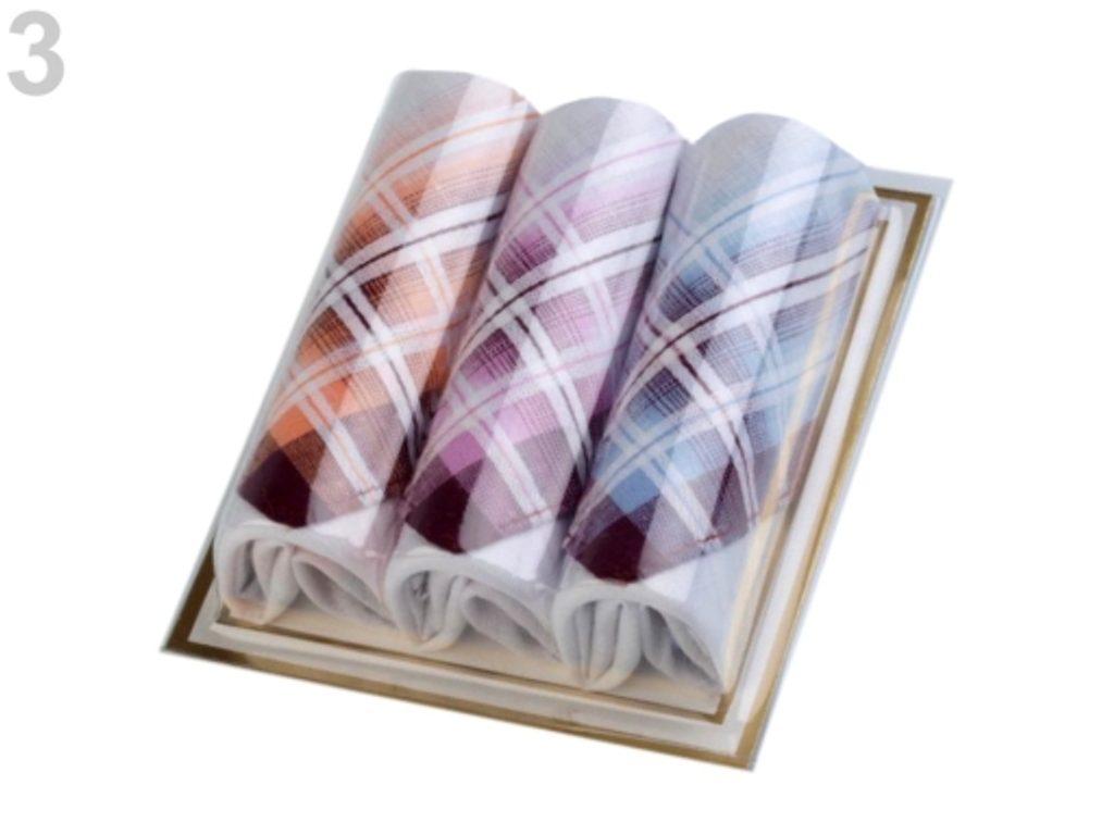 Sada kapesníků je univerzálním a praktickým dárkem. Potřebujete-li malý dárek, který udělá radost, tato sada je tou pravou volbou. Kapesníky jsou zabalené v malé krabičce s průhledem. V jedné krabičce jsou 3 čtvercové kapesníky.