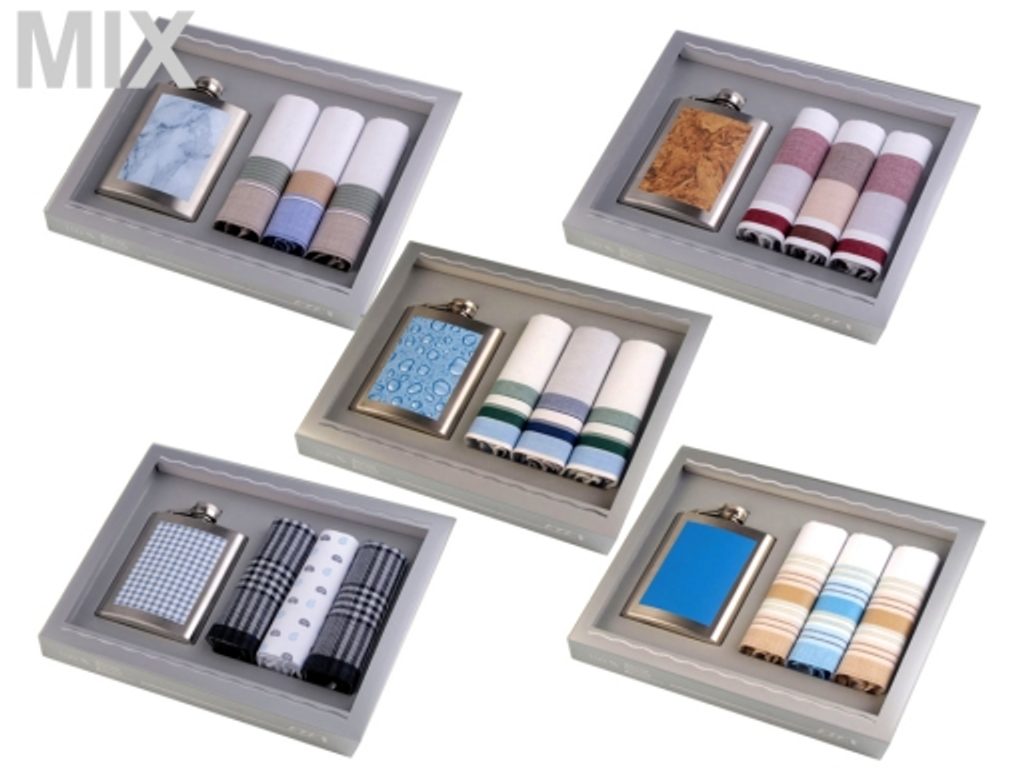Pánská dárková sada kapesníků s placatkou je univerzálním a praktickým dárkem, který určitě potěší každého muže. V sadě najdete tři kapesníky a jednu placatku. Placatka je vyrobená z nerezové oceli. Rozměry bavlněných kapesníků jsou 46 x 46 cm.