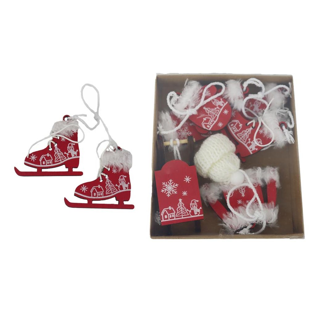 Sada vánočních dekorací k zavěšení. Sada obsahuje 6 dekorací. Dekorace mají rozměry : 2,5 - 6 x 0,5 cm, výšku 2 - 6 cm.