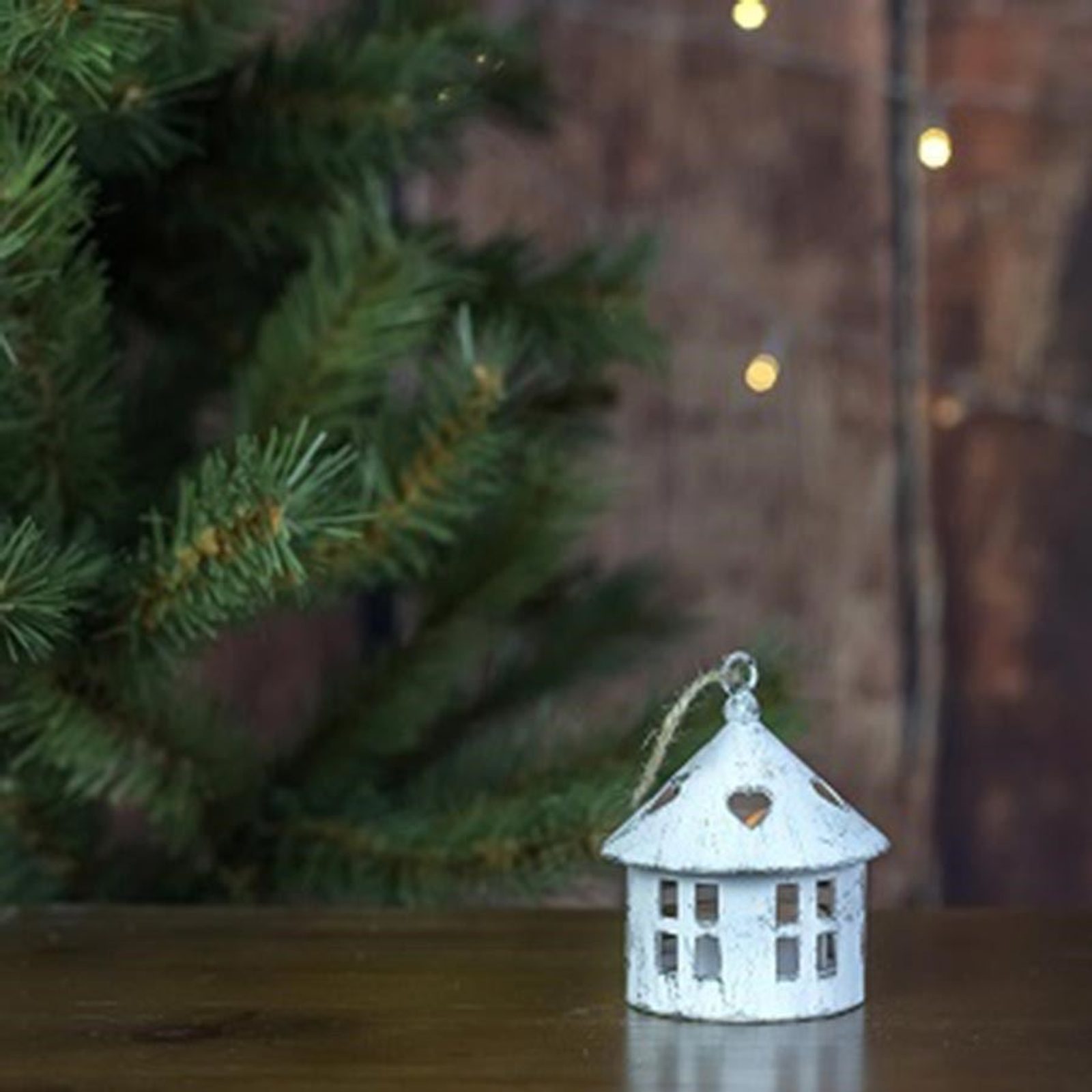 Dekorace s LED osvětlením k zavěšení. Bílý domeček s možností zavěšení