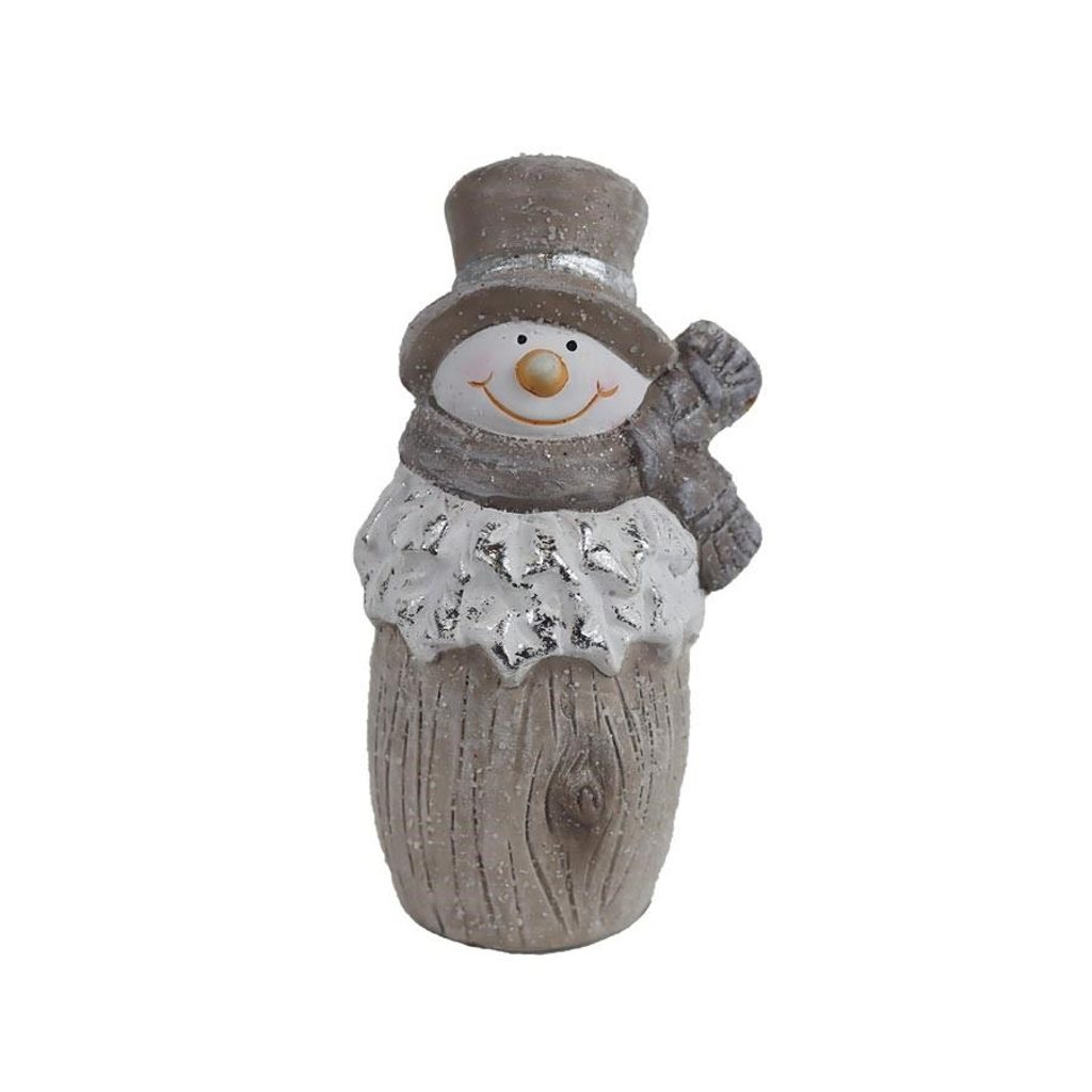 Dekorační sněhulák. Rozměry : 6 × 4.5 cm, výška 11 cm. Barva : šedá. Materiál : keramika.
