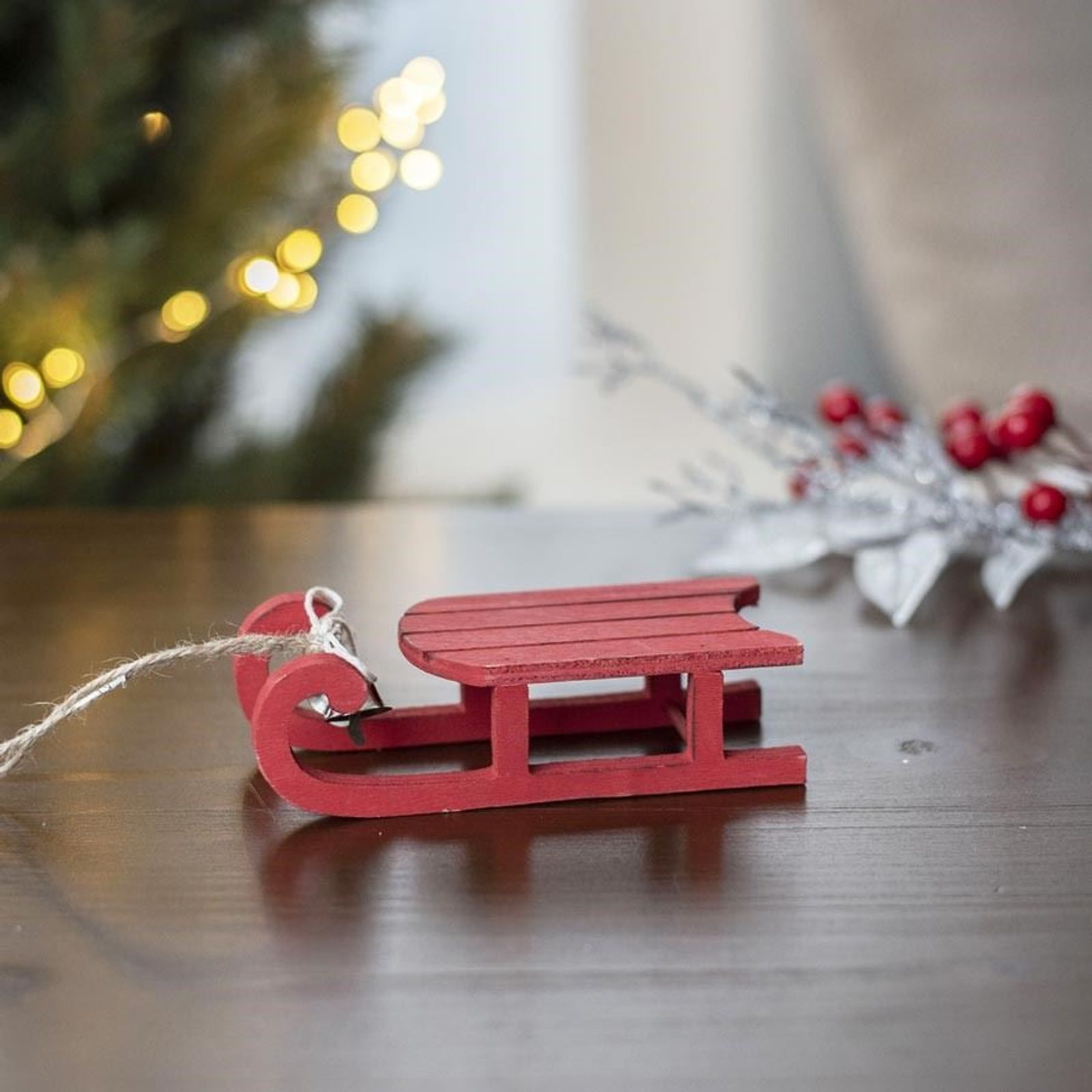 Dekorační sáňky v červené barvě, k zavěšení. Sáňky budou skvělou vánoční výzdobou pro Váš dům či byt.
