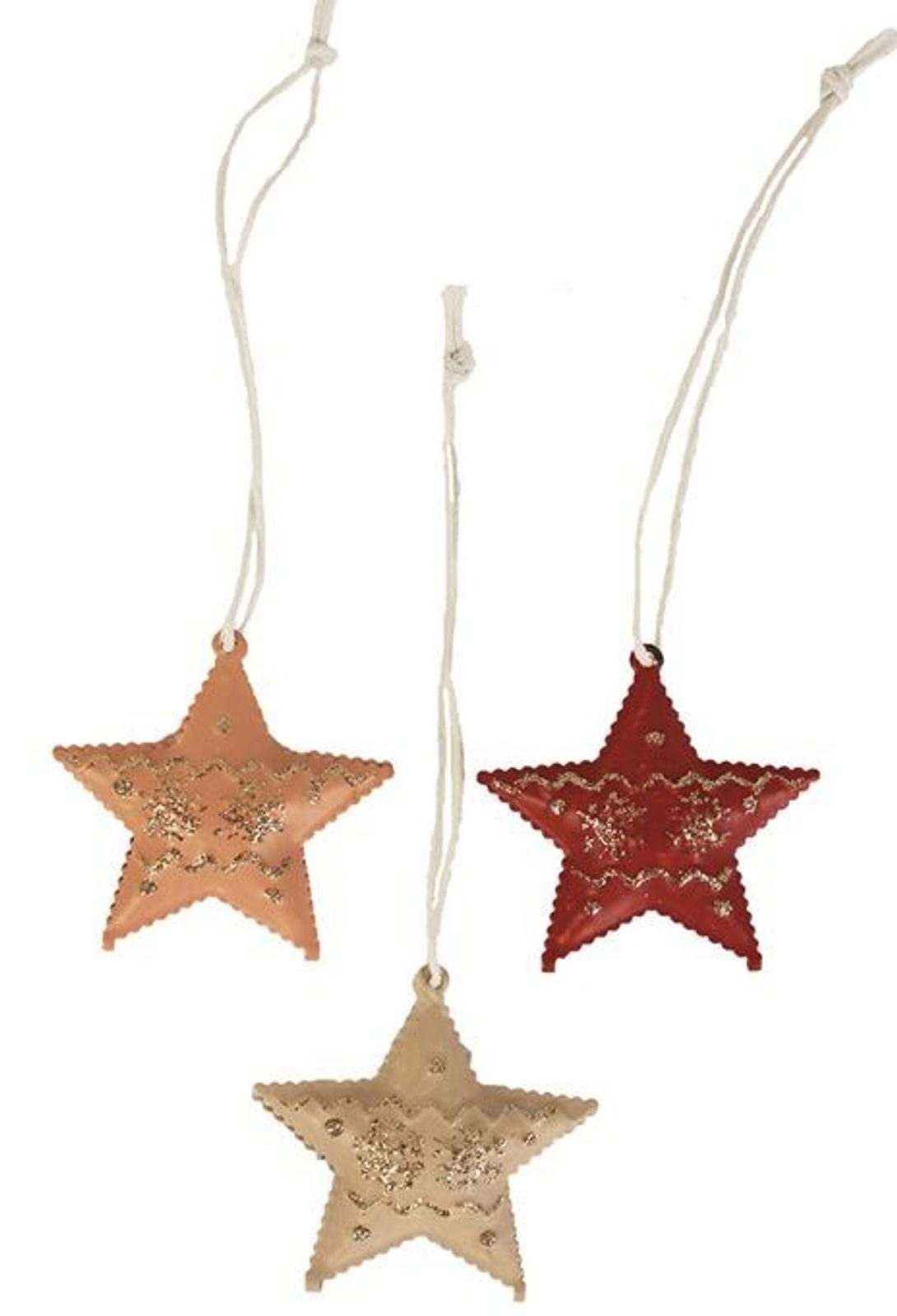 Kovové dekorační hvězdičky k zavěšení. Hvězdičky můžete pověsit na vánoční stromček, vánoční větvičky atd.
