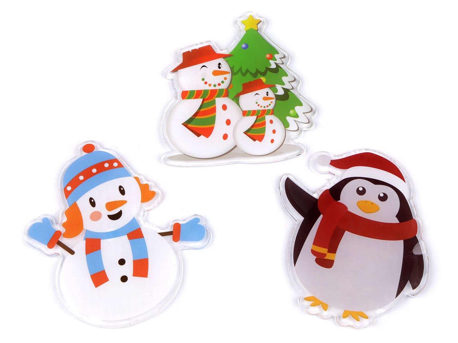 Vánoční gelové samolepky na okno - sněhulák, tučňák