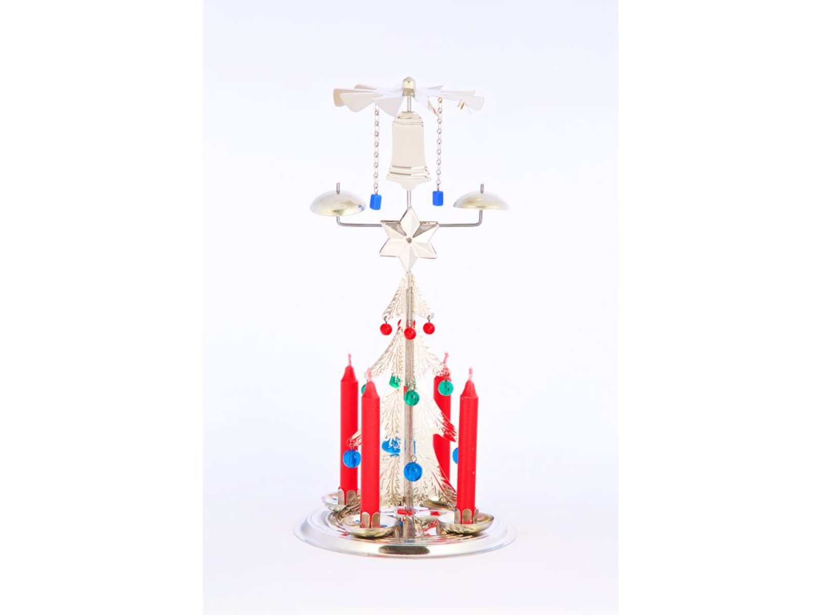 Zvonící stromek - střbrný. Balení obsahuje 4 svíčky. Výška 30 cm.