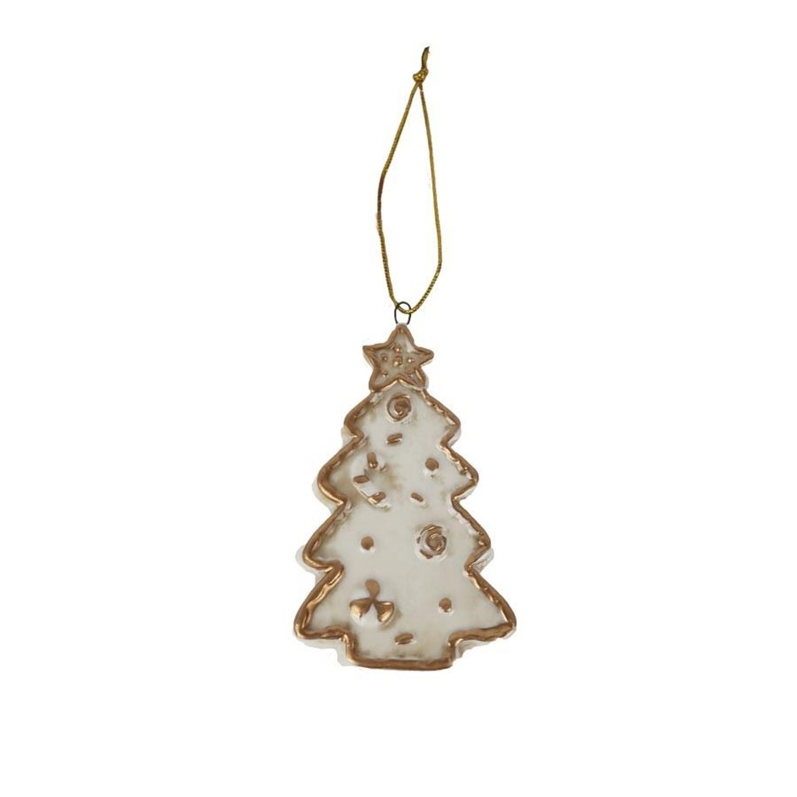 Stromek k zavěšení. Rozměry : 5,8 × 1 cm, výška 9 cm. Barva : kombinace krémová se zlatou. Materiál : porcelán.