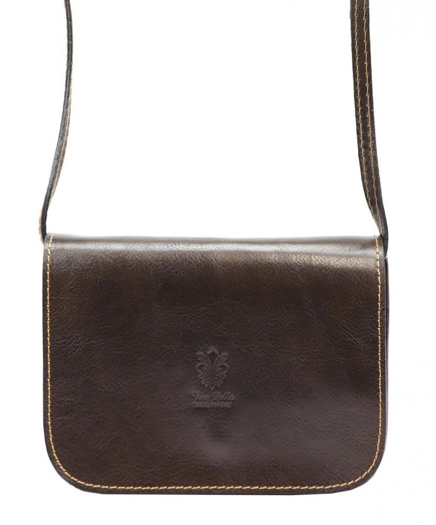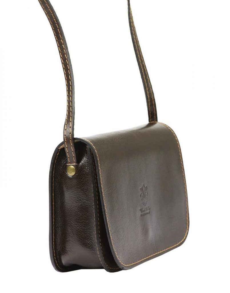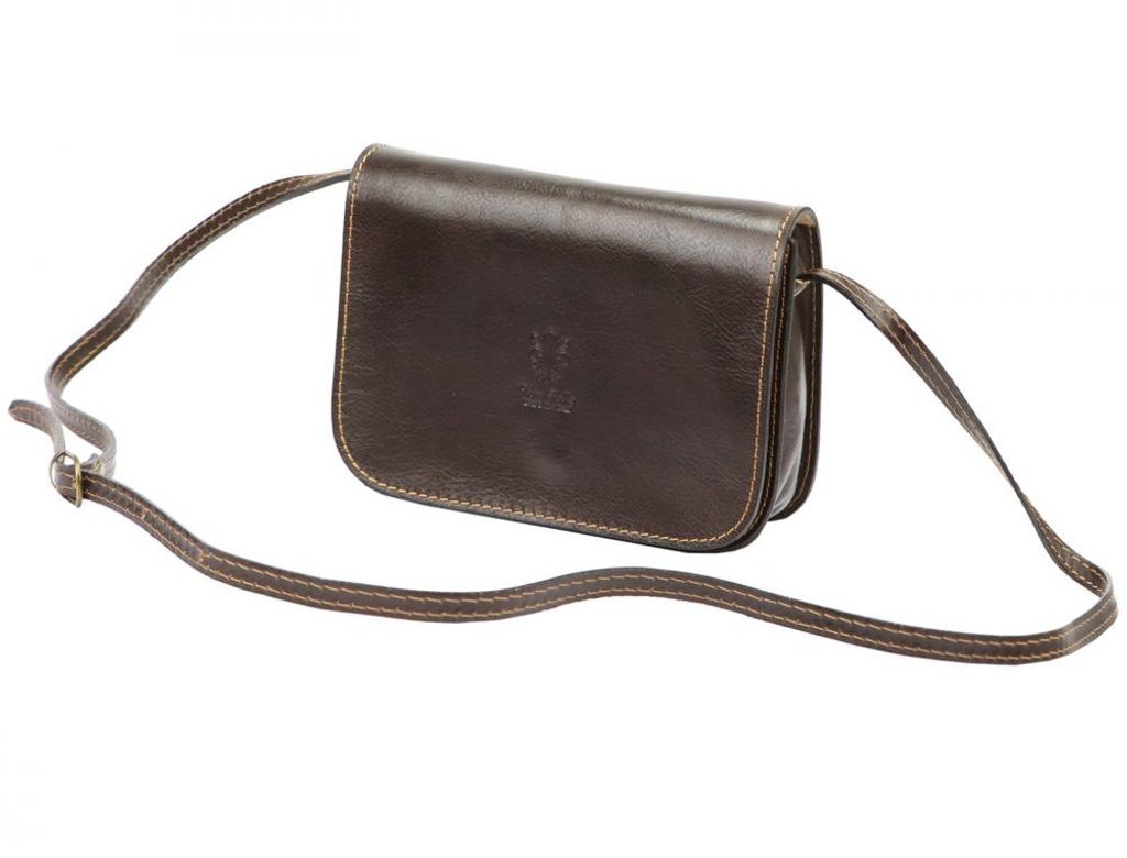 Kožená malá dámská crossbody kabelka tmavě hnědá