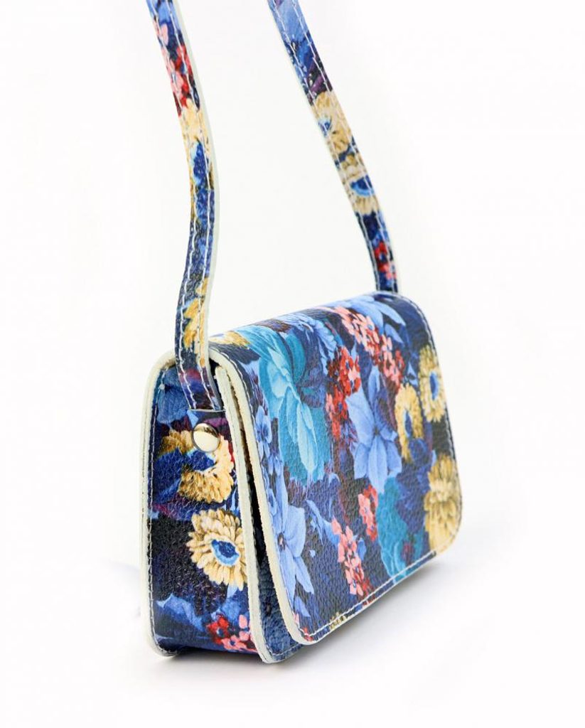 Kožená malá dámská crossbody kabelka s motivem květin