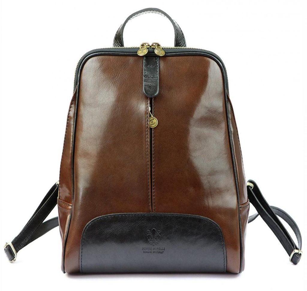 Kožený tmavě hnědo-černý dámský batoh Florence