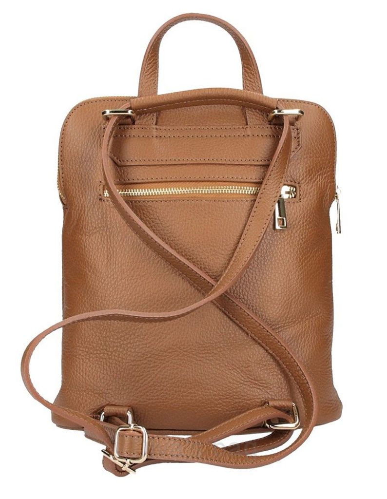 Kožený menší dámský batůžek s čelní kapsou a zlatými doplňky tmavě hnědý