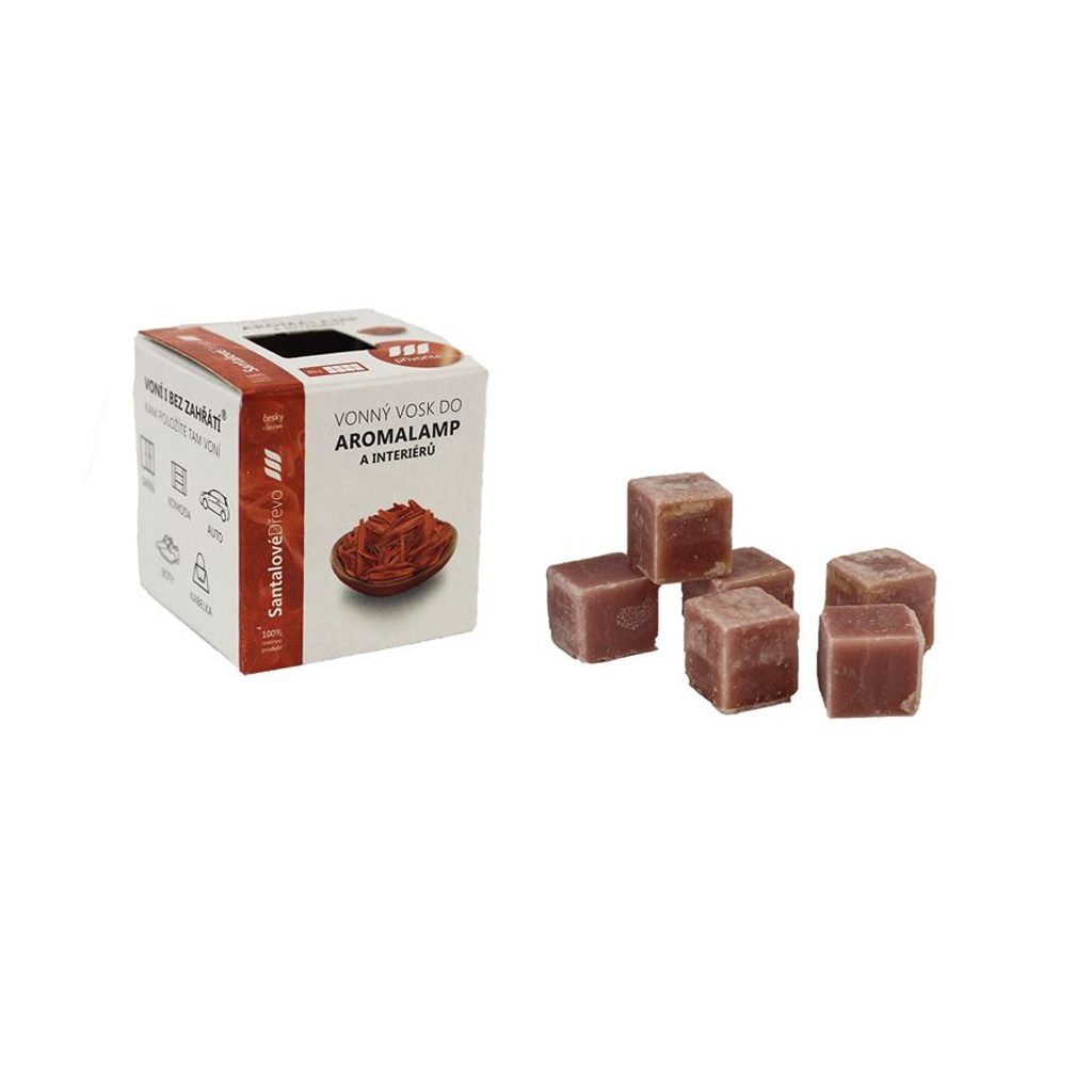 Vonný vosk - SANTALOVÉ DŘEVO TG. Krabička má rozměry 4 x 4 x 4 cm. Krabička obsahuje 8 kostek vosku o velikosti 1,5 x 1,5 x 1,5 cm. Vosk můžete použít do elektrických aromalamp i do aromalamp na čajovou svíčku. Také můžete vosk použít v interiéru - kam vosk položíte, tam voní.