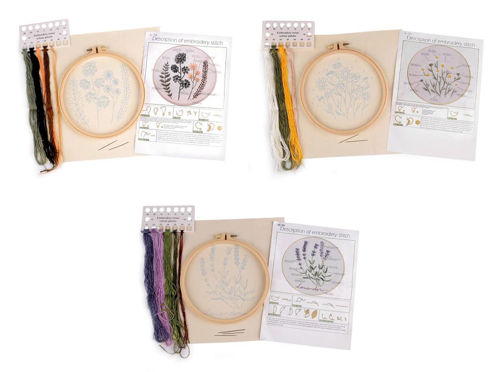 Se sadou na vyšívání vytvoříte pozoruhodné obrazy kytic a lučního kvítí. Vyšívá se na předtištěnou tkaninu pomocí příze mouline.