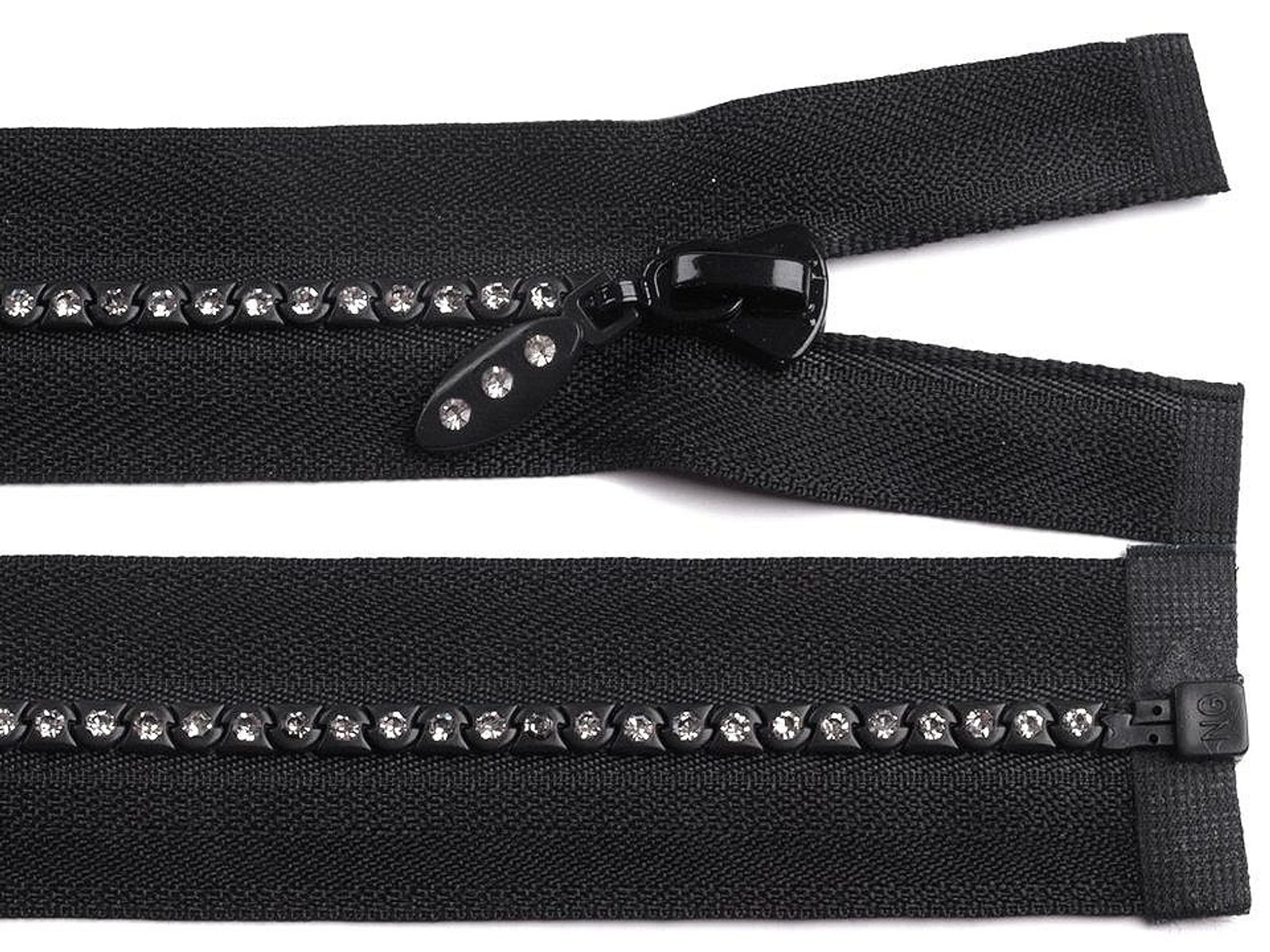 Kostěný zip šíře 4 mm délka 65 cm se štrasovými kamínky