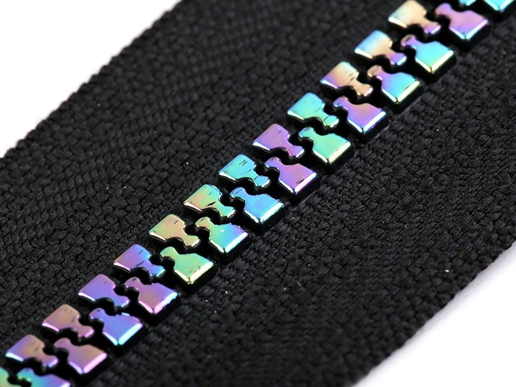 Kostěný zip upoutá pozornost duhovým efektem, který dodá vašemu oblečení atraktivní vzhled. Zip můžete použít na bundy, kabáty, mikiny, svetry, apod.