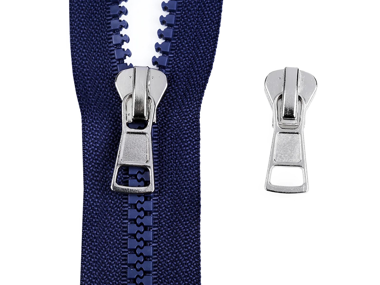 Kovový jezdec je určený ke kostěným zipům o šíři 8 mm v metráži.