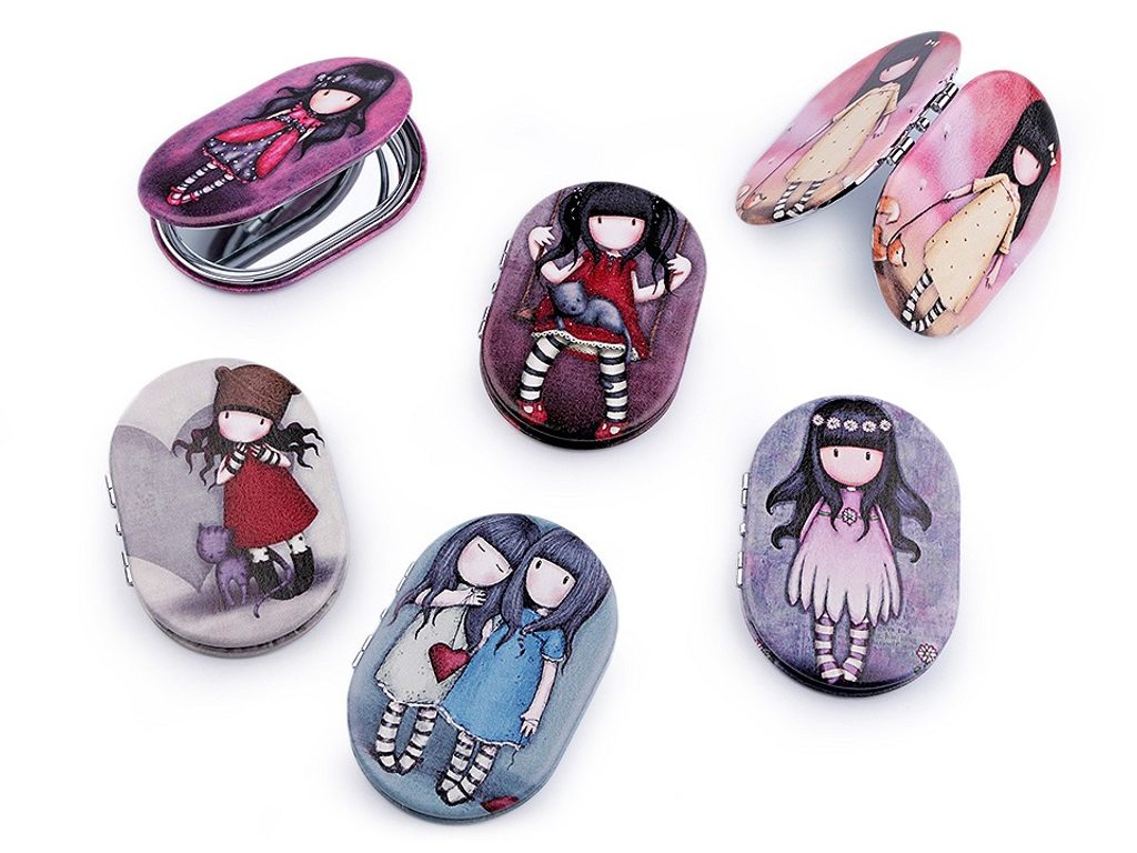 Otevírací zrcátko se stylovým potiskem dívky se hodí pro opravu make-upu kdykoliv během dne.